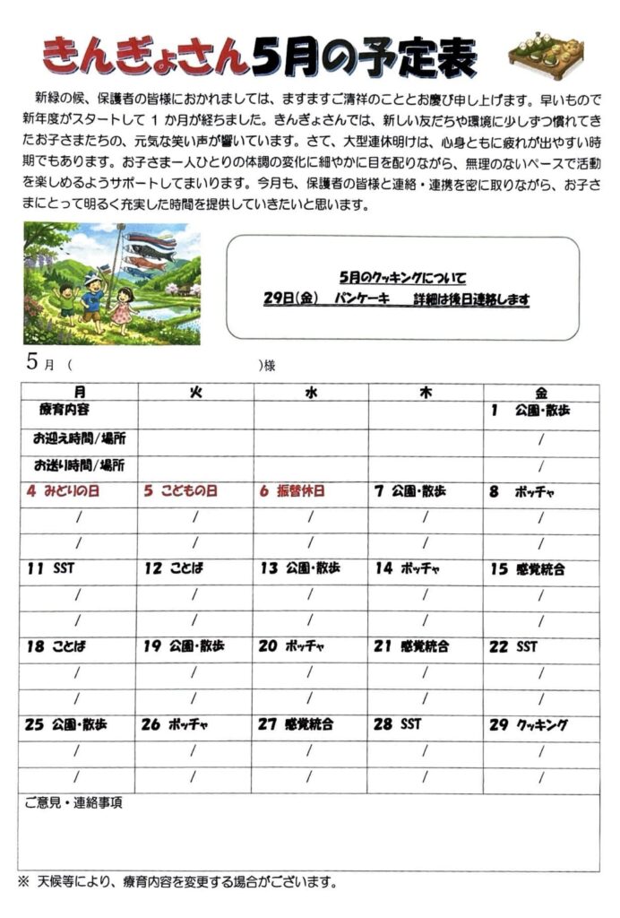 5月の予定です